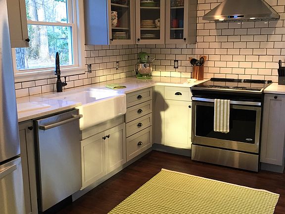 SOLD . Location, Location, Location! This property is located within walking distance of UVA and Barracks shopping center (restaurants, Starbucks, CVS). . Beautifully remodeled (2017) single family home in quiet neighborhood near Barracks shopping center. New open-concept kitchen, living, and dining area. Brand new kitchen cabinets, farm sink, stainless steel hood, coffee bar with quartz marble countertops, cabinet storage, shelving and appliances. Electronic doggie door. Newly remodeled bath with cast iron tub, subway tile, large vanity with deep drawers for storage. Black & white penny tile in bath - newly refinished hardwood floors throughout rest of home. All new windows (14), custom fabric cordless shades, all new plumbing and electric. Working fireplace. Structurally reinforced basement with lifetime warranty transferable to new owner. Large lot with fenced-in back yard, mature oak trees, deck, patio, and barn for additional storage. Unfinished walk-out basement with laundry and large rooms for substantial storage.