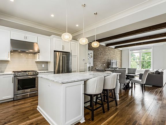 Classic subway tilesBreathtaking exterior designCrown moldingCustom built-in microwave drawerExposed brickPrivate stepsEnd unit
