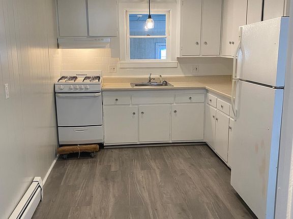 Newly renovated, roomy 1 bedroom apartment, freshly painted with newly installed flooring, hood range vent, and ceiling lighting. Baseboard heat and hot water INCLUDED in the rent. Apartment is set back from street. Assigned off street parking, large yard and parking lot for visitors. -gross income must be 3 x Rent Or valid section 8 Voucher -subject to background and credit check -no eviction history -non-smoking apartment -First and last months' rent and security deposit required to move in -completed Zillow application required prior to scheduling a viewing