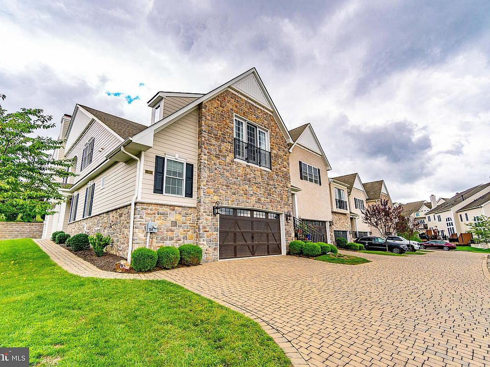 Welcome to 114 Wellington Drive, a stunning 3-bedroom, end-unit luxury townhome located in the sought after Ravenscliff community in Media. Enter the home into the 2-story foyer with gleaming hardwood floors that continue throughout the home. Beautiful kitchen boasts upgraded hardwood natural maple soft close cabinets, an oversized Quartz countertop island with breakfast bar, tile backsplash, upper cabinet lighting, double wall oven, soft close drawers, 2 pantry closets, a breakfast room and slider to the composite back deck where you can entertain or relax outdoors. Open from the kitchen is the expansive living room with elegant coffered ceiling, a floor to ceiling stone fireplace and double stacked windows that fill the room with natural light. Enjoy the convenience of a main floor master bedroom with crown molding, walk-in closet and en-suite with double vanities, a tiled shower and tile floor. A powder room, mudroom and access to the 2-car garage completes the main level. Upper level welcomes you to a beautiful study, perfect for working from home and an open doorway to the loft that is filled with natural light from the two-story windows. This loft space could be perfect for another office space, home gym, playroom or whatever you can imagine! Two additional bedrooms sharing a Jack and Jill bath can also be found on the upper level. The unfinished basement with 9-foot ceilings offers a double-wide egress window and is ready to be finished to your liking or take advantage of the unfinished space for all of your storage needs! Some additional features this home has to offer are upgraded variable speed high efficiency gas furnace with an extra large air conditioner, Rinnai tankless water heater, water softener, built-in sprinkler system and so much more! Conveniently located minutes from major roadways and downtown Media with great local shopping and dining!
