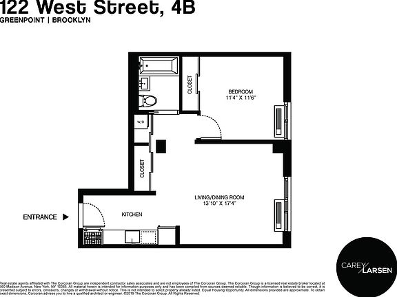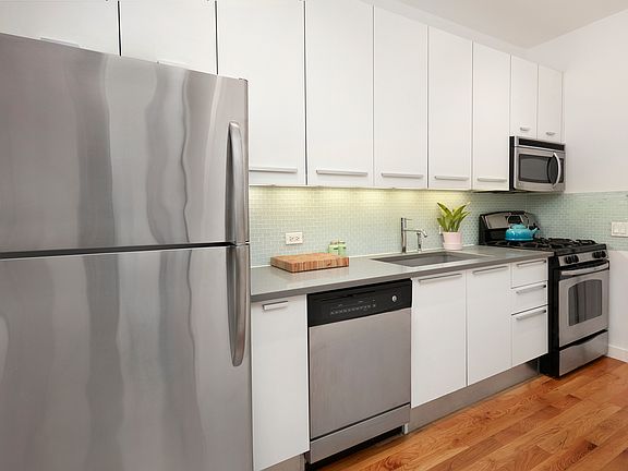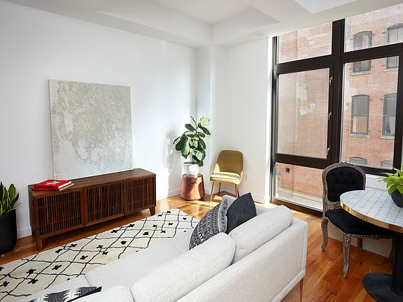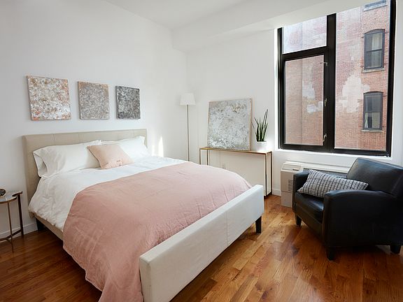 Welcome to unit 4b, in the Pencil Factory Condominium. This courtyard facing 1 bedroom with custom built in home office or walk in closet is the perfect home to enjoy the lively waterfront area. This generous sized one bedroom with an added home office features high ceilings, floor to ceiling windows, beautiful oak hardwood flooring, a large living space , stainless steel kitchen, more closet space then you will know what to do with, and a modern bath with deep soaking tub + washer/dryer in unit. Originally built in 1872 for the Eberhard Faber pencil company and now one of Greenpoint's only luxury condominiums, renovated and rehabbed in 2009. The building offers all occupants a fully automated entry door system with package room, a residents lounge, fitness center, kids playroom, bicycle storage and common roof deck enhanced by a restroom for convenience while entertaining on the spectacular roof with sweeping city and harbor views. Located on the Greenpoint waterfront, just one block to the Greenpoint Ferry landing and two just short blocks to the G train, as well as the Franklin Street District with countless new cafe's, shops, bars, restaurants and more opening every day!