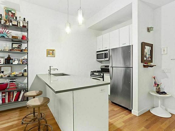 Apartment 4D at the historic Pencil Factory is an efficiently laid out 1Br/1Ba home with large casement windows allowing incredible natural light into the unit. The lofted and beamed ceilings gives this home character and volume. The open kitchen features an island countertop, stainless steel appliances, and high end finishes that complement the apartment well. There are plenty of closet space generous in both width and height, washer & dryer in unit closet also comes complete with custom shelving to maximize the storage space. This historic building offers residents a virtual doorman system, a residents lounge, gym and incredible common roof deck with expansive views of Manhattan and Brooklyn. Located just two blocks from the waterfront, this home is within striking distance to the G-Train and East River Ferry. Extra storage available for $75 a month & parking on-site.