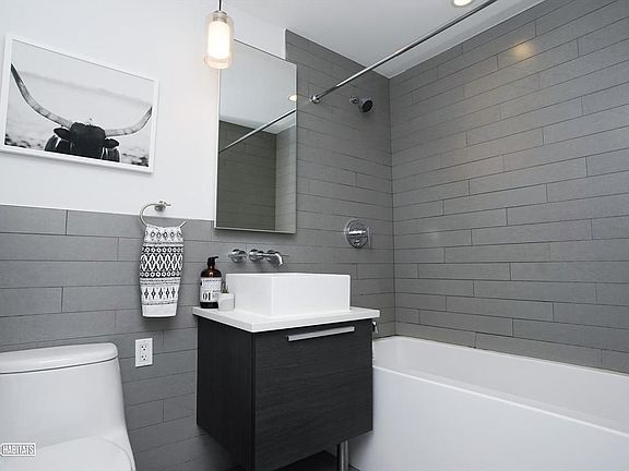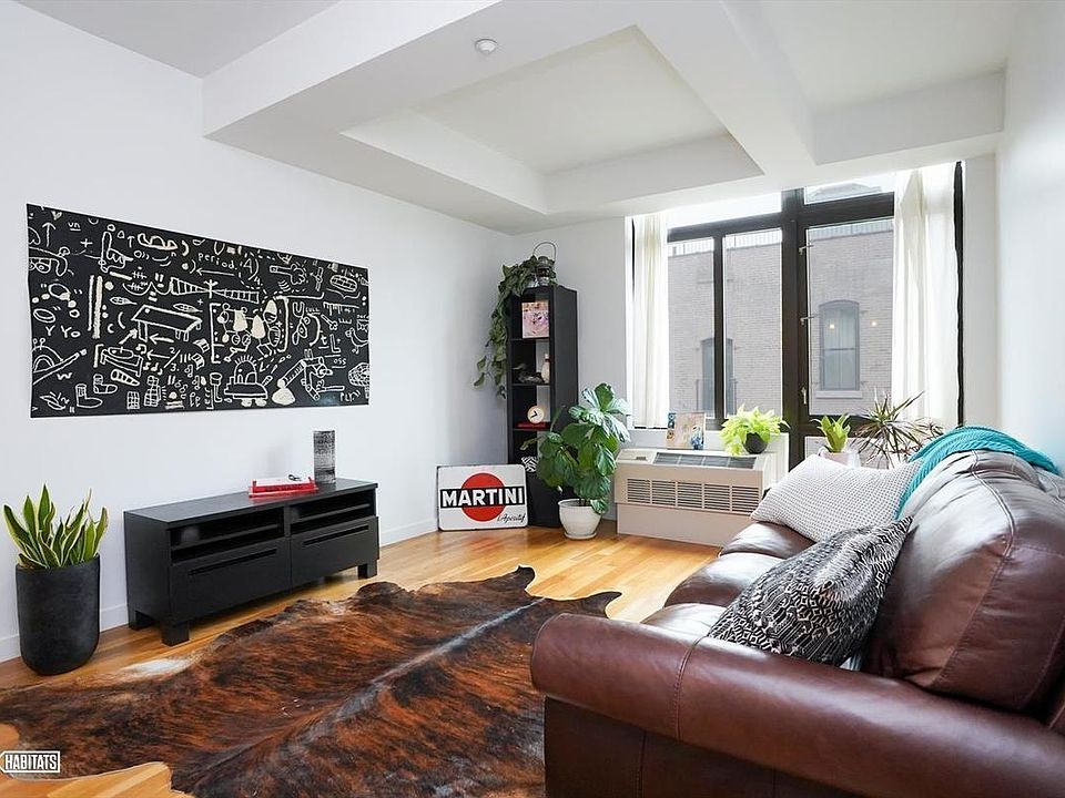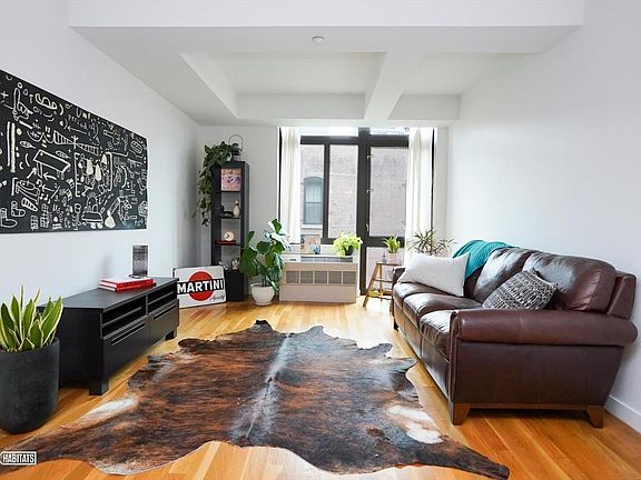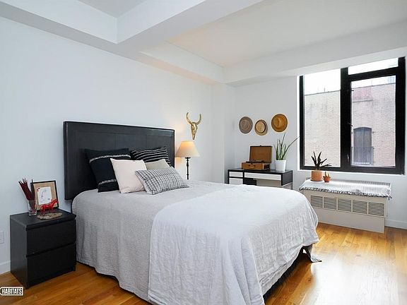 Welcome to unit 5D, in the Pencil Factory Condominium. This courtyard facing 1 bedroom is the perfect home to enjoy the lively waterfront area. This generous sized one bedroom unit features high ceilings, floor to ceiling windows, beautiful oak hardwood flooring, a large living space , stainless steel kitchen, more closet space then you will know what to do with, and a modern bath with deep soaking tub + washer/dryer in unit. Parking spot and additional storage available for an additional fee. Originally built in 1872 for the Eberhard Faber pencil company and now one of Greenpoint's only luxury condominiums, renovated and rehabbed in 2009. The building offers all occupants a fully automated entry door system with package room, a residents lounge, fitness center, pool table room, bicycle storage and common roof deck enhanced by a restroom for convenience while entertaining on the spectacular roof with sweeping city and harbor views. Located on the Greenpoint waterfront, just one block to the Greenpoint Ferry landing and two just short blocks to the G train, as well as the Franklin Street District with countless new cafe's, shops, bars, restaurants and more opening every day!