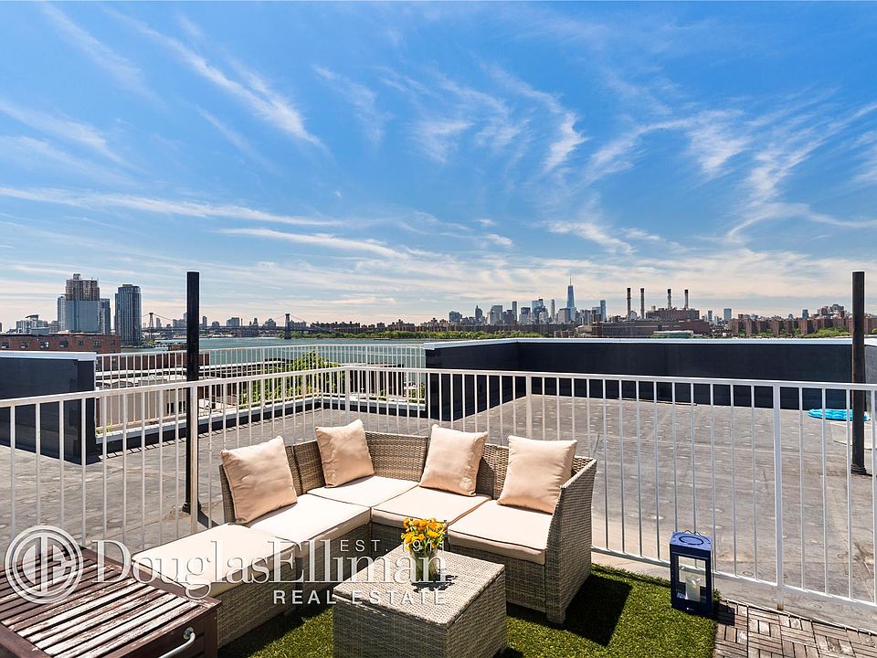 Unique opportunity in Prime Greenpoint to own a one bedroom with an expansive private roofdeck in Greenpoints' premiere condominium building, The Pencil Factory. The open kitchen is a chefs paradise with Caesarstone countertops, stainless steel appliances, subway tile backsplash, and an upgraded Bosch dishwasher. The bathroom has Danze fixtures and a deep-soaking tub. The washer and dryer is also conveniently located next to the bathroom too. Elegant modern stairs from the living room lead you up to a stunning and expansive roof deck with vistas of both Greenpoint, Manhattan and beyond! This eastern facing Sun-drenched home with loft-like high ceilings and oak hardwood-floors throughout make this the perfect oasis after a busy day. The Pencil Factory condominium also features high end amenities including a common roofdeck, virtual-doorman, full-time super, gated private off street parking, package storage room, common areas with kitchen and pool table, fitness center, storage lockers, bike storage and a lovely courtyard. Just 2 blocks to the India St. Ferry a Citi Bike dock and 3 blocks to the G-train you can get anywhere you need to be in no time. Plus, you're just a block from the rapidly changing Franklin Street which has restaurants, bars, and shopping for everyone. This building is also pet friendly. Tax abatement is in place through 2025.