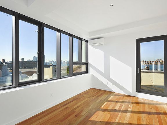 RARE and dazzling PENTHOUSE for sale in PRIME GREENPOINT! Breathtaking views of Manhattan and of the East River from large windows in the living room AND dining room and a huge adjoining private terrace! Beautiful three bedroom/three bathroom 1800 SF loft is available for occupancy right away. The master bedroom suite has access to the terrace as well and offers a windowed bathroom with a shower and a bathtub. All the rooms have tons of light and are spacious. Large, modern chef's kitchen, beautifully custom-built closets and a washer and dryer are some of the great offerings here. Central air conditioning and heating throughout the apartment. The incredible views and spacious feel of the loft must be seen to be appreciated. Some of the amenities of the building are a beautiful lobby and meeting room, a common roof deck and a fitness center. The building is located a few minutes from the G train and one block from the ferry. A wonderful new park is located half of a block away. 122 West Street is surrounded by great new restaurants and cafes down the street on charming Franklin Street and by very well established supermarkets, bakeries and other vital businesses a few minutes away on Manhattan Avenue.