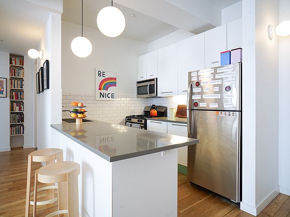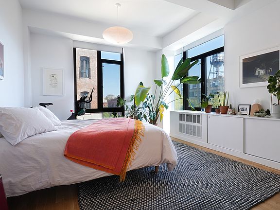 Welcome to unit 4F, in the Pencil Factory Condominium. This corner unit with iconic water tower view and incredible light is waiting to be yours! At 1100 sqft this well sized 2bedroom 2bathroom is the perfect home to enjoy the lively waterfront area of Greenpoint. This beautifully designed unit features high ceilings, floor to ceiling windows, pristine oak hardwood flooring, a large living space , stainless steel kitchen, an abundance of closet space, a windowed master bath where you find a separate shower and deep soaking tub creating a spa like experience to pamper yourself after a long day. The second bath with crisp white finishes is perfectly situated near the second bedroom. Custom cabinets contain the PTEC units throughout the apartment providing a quieter and more aesthetically pleasant heating and cooling experience. The full sized washer/dryer bring true value to rental opportunity in a condo with all the amenities of modern living. Originally built in 1872 for the Eberhard Faber pencil company and now one of Greenpoint's only luxury condominiums, renovated and rehabbed in 2009. The building offers all occupants a fully automated entry door system with package room, a residents lounge, newly renovated fitness center, bicycle storage and common roof deck enhanced by a restroom for convenience while entertaining on the spectacular roof with sweeping city and harbor views. Children's play room coming soon. Located on the Greenpoint waterfront, just one block to the Greenpoint Ferry landing and two short blocks to the G train your commute will be a breeze. Transmitter park and pier couldn't be closer! You'll enjoy movies from the grassy field and walks along the pier. With countless new cafe's, shops, bars, and restaurants plus more opening every day.