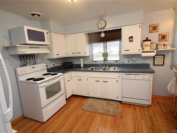 Well loved 3 Bdrm. , 1.5 Bath Colonial with hardwood floors, part finished basement, patio, breezeway and lots of updates throughout! Hi E Furnace'09/AC '10/ roof '09 / Driveway '09 / Updated 200 AMP electric service / Updated Vinyl windows / Concrete patio / Upgraded Exterior doors /Current RGE budget approx. $ 105 mo. Super value, just move in.