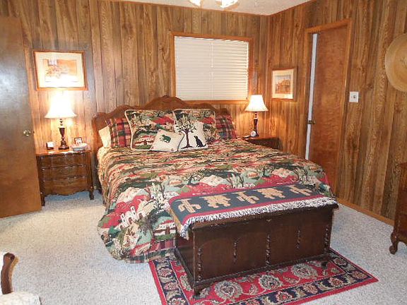 SITUATED ON A LEVEL CORNER LOT, THIS CEDAR SIDED CABIN EXUDES THAT SOUGHT AFTER MOUNTAIN FEELING. MASTER IS ON MAIN LEVEL. MOSS ROCK FIREPLACE IN LIVING ROOM WITH BEAMED CEILINGS. WOOD PANELED WALLS ADD TO THE MOUNTAIN AMBIANCE. GUEST BEDROOMS ARE UPSTAIRS WITH A LOFT AREA AND A GAME ROOM OR OFFICE THAT HAS BEEN ADDED ON. GAME ROOM HAS SOME BUILT INS, WET BAR AND A WOOD STOVE. LOTS OF NATURAL LIGHT IN THIS ROOM. FENCED BACK YARD IS GOOD FOR PETS. NICE PINE TREE COVERAGE ON PROPERTY. LARGE COVERED DRIVE THRU CARPORT. CLOSE PROXIMITY TO LINKS RECREATIONAL TRAIL AND HAS GOOD YEAR ROUND ACCESS.