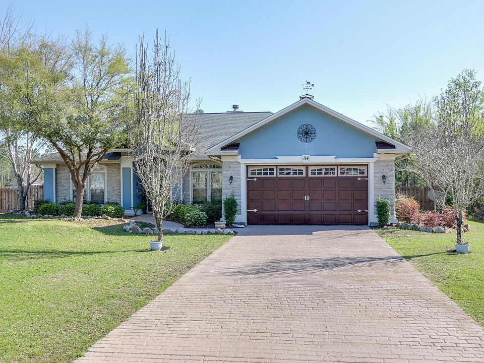White Oaks subdivision provides country living just north of Southport, FL. This gorgeous home has been updated with industrial nautical fixtures and colors! You will love it from the moment you enter the driveway to see the updated stamped concrete and darker garage door with engineered stone on the front of the home. The living / dining room soars to 16 feet and features a rustic stone fireplace with gas logs. The kitchen is open to the living room and breakfast area making it ideal for entertaining. Custom oak cabinets, ubatuba granite and new lighting have updated the kitchen to the latest style. The appliances are all Maytag and there is a pantry as well!