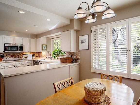 Desired location and tranquil wood setting with a seasonal stream sits this upgraded home in the sought after White Oaks complex. The two bedroom, two bathroom has an extended deck, vaulted ceilings, Hickory floors, stainless appliances, eat-in kitchen and air conditioning for the warm summer days. Main floor master retreat features double sinks, sunken tub, separate shower and large walk-in closet. In the heart of sunny Carmel Valley Village, just a short distance to restaurants, shops and wine tasting rooms.