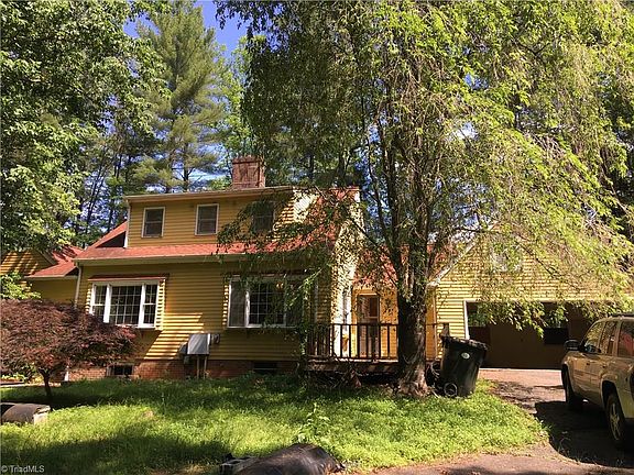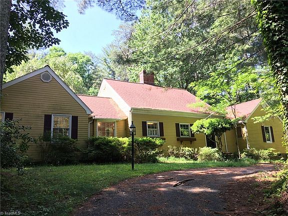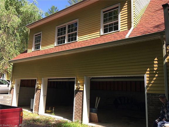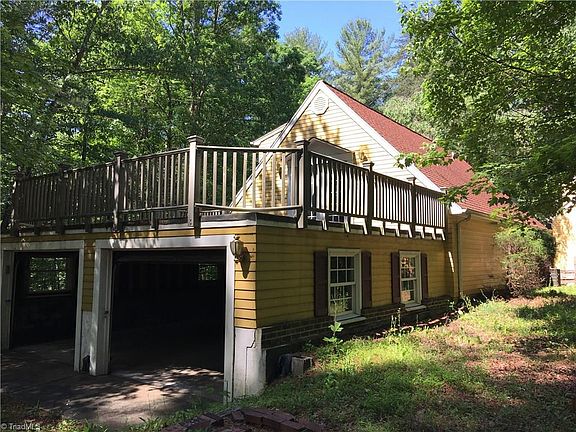 Spacious home with 3+ acres of wooded acreage on a corner in secluded neighborhood. Located North of Mount Airy and south of the NC/VA state line. Give this home a make over and turn it into a show place. 3 BR, 2.5 BA, 2 FP, and basement accessed by a circular drive or private drive to your 6 garage spaces. Unfinished apartment over 5 car garage for family or guests. Walk and enjoy the wooded site or stroll through the neighborhood for leisure. 3 BR homes with 3+ acres under $250,000 are hard to find!