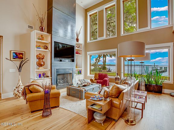 Unmatched lifestyle for marine, aviation & nature enthusiasts! 2021 craftsman home nestled along the St. John's River in a fly-in community w a 3,000' runway & opp for private hangers. On .66 an acre w 105' river frontage, this sophisticated home includes 4 beds, 3 ba, 2 HB, loft, oversized & air conditioned 3 car G w 200-amp, 161' composite dock, 12,000 lb. lift, & a limestone shelf. The structure is superior w concrete + reinforced steel rods, Hardie, impact w&d, metal roof, generator, & 7.5' elevation. Luxe features like hickory wood floors & cabinetry, steel 21' gas fireplace, 10-21' ceilings, cobblestone, imported sinks, & 500 lb. Walnut door. Open concept w panoramic river views + chef/entertainer's kitchen w granite, gas stove, 2 dishwashers, 2 sinks, 2 beverage frid, double ovens & details like warming drawer, instant hot water, sound sys, & temp controlled wine cellar! Enjoy outdoor living, wildlife & stunning sunsets from travertine deck, screened lanai, dock or firepit!