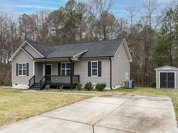 Charming ranch home on quiet cul-de-sac lot! Don’t miss this adorable split bedroom layout with two baths, perfectly kept & ultra clean, open family room with cathedral ceilings, gorgeous kitchen with granite counters, 42“cabinets, all kitchen appliances, 9‘ceilings, complete with a beautiful Owner’s suite with bay window, walk in closet, big bath with double vanities. Plus, there are large secondary bedrooms, a separate laundry room and pantry with loads of storage, and an amazing wooded view. Two car driveway, and a large wired storage building/workshop. Convenient to Raleigh, Durham and RTP! Just a short walk to downtown Creedmoor, shopping, dining, & events! No HOA. HURRY!!