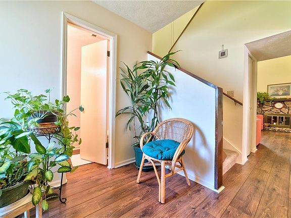LOOK! Exciting townhome community tucked away on private street approx 1 mi from Avalon, d'town Alpharetta, 400, Shopping & Dining. Just minutes to Big Creek Greenway. This Unit has private wooded yards side & rear! Soaring ceilings in 2 sty great room w/floor to ceiling windows. New wide-plank hardwd floors on main level. Dining area opens onto back patio. Kit opens to separate family rm w/2nd fireplc & patio. Large Owner's suite w/walk-in closet. 2 more spacious bedrms & bath. 1-car carport w/large storage room & storage in attic. Great Rare Opportunity!