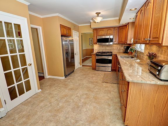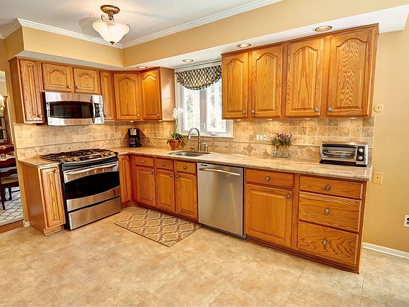 Incredibly pristine and upgraded colonial situated on a large, peaceful lot in the desirable community of Montgomery Woods. The kitchen boasts abundant oak cabinetry with granite counters, tumbled marble backsplash and floor, stainless steel appliances, and recessed lighting. The adjoining breakfast area has glass French doors that lead to a wonderful paver patio with a built-in infrared grill and hard-piped natural gas. The patio overlooks a back yard with ample lawn space and then semi-wooded space beyond for great privacy and afternoon shade. Back inside, the family room offers crown moulding accents, a bay window, a wood-burning fireplace, and hardwood floors that extend through the foyer, dining room, and living room. The dining room and living room also offer crown moulding accents and an attractive, neutral d~cor. An updated powder room and a huge mudroom complete the main level of the home. Downstairs, a finished recreation room has a cozy electric fireplace and provides great extra living space. Upstairs, the master bedroom features a walk-in closet and a beautifully upgraded master bath with two separate vanities, ceramic tile flooring, and a tile and seamless glass shower. Three other nicely sized bedrooms are served by an updated hall bath and complete the upper level. There is also hardwood flooring in all the bedrooms including the master bedroom which has carpeting over the hardwood. Other important updates to this home include: New driveway (2016), Basement waterproofing (2007), Stainless Steel Chimney Liner (2005), Roof and Vinyl Siding (2001), Furnace (2000).
