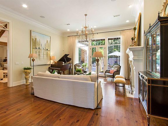 Welcome to 114 Woodmont Way in the beautiful gated community of Bridgewater One. This stunning traditional, custom, one owner home with everything ready for new owners to move in, is better than new construction. It was designed with amazing outdoor spaces, wrapped by abundant indoor entertaining spaces. The tall Hurd windows flood the home with natural light. Clean lines and beautiful finishes accentuate the rooms that flow seamlessly through the gorgeous living and formal dining spaces. The high-end chef's kitchen with Wolf appliances and adjoining family room, casual dining space lead out to courtyards and porches. Private Master suite with 2 closets and 2 toilet rooms, laundry center, linen closet, huge shower, soaking tub and 2 vanity dressing areas. 2 additional bedrooms on the main level with en suite bathrooms. Upstairs you'll find a large media room with 135" tv screen and 2 built in bunks and a wet bar to serve as guest room or for your own movie watching pleasure. Full bath and walk-in closet to serve the upstairs guests or residents. 2 separate floored attic spaces. Half bath off Library. 3 fireplaces with gas logs, sound system throughout as well as separate systems in the media room and Library. 2 outdoor courtyards for entertaining, cabana with fireplace and tv, outdoor kitchen with grill, refrigerator and ice machine. Granite counters and bar top. Saltwater Gunite Pool/spa/fountain. 4 car garage with 1 bay heated and cooled by a mini-split and has direct internet. Landscape lighting, irrigation, eve lights, all on timers as well as outlets around the whole exterior on timer. Beautifully landscaped and maintained to perfection. Too many custom features to list, so call your favorite realtor today to see this wonderful home or call me and I'll be happy to show.