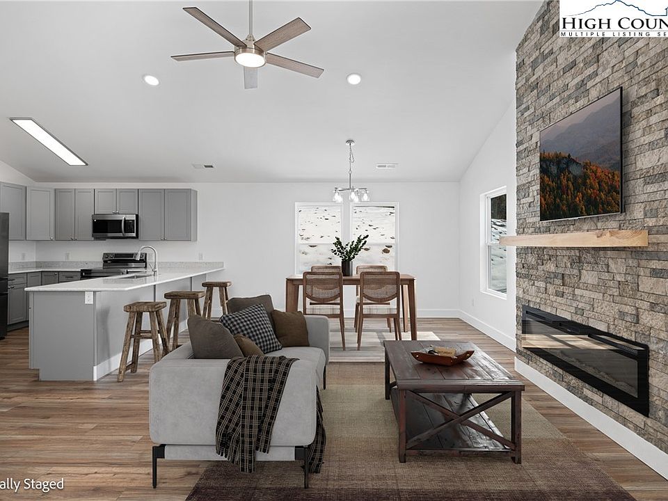 *NEW CONSTRUCTION IN BUCK MOUNTAIN* This NEW MOUNTAIN HOME on 2+ acres has been thoughtfully designed to maximize the feeling of spaciousness with an open floor plan featuring a seamless blend of kitchen, dining area, and living room, under cathedral ceilings, anchored by a fireplace, creating a bright, airy, and cozy gathering space. The eat-at bar provides extra counter space and additional seating for guests. You’ll find true main level living here with two bedrooms, a full bathroom, and laundry on the main level. The lower level of this home offers endless possibilities. With the ambiance of the fireplace, this would be a great space for a game/media room or a hang out space for guests. The 3-bedroom septic permit opens the option for a private bedroom suite to be added. Enjoy the outdoors on the covered back porch or the covered back patio. There is even a spot to add a fire pit to gather with guests. This home was built with energy-efficient Superior Walls. With easily year-round paved road access, this is an ideal spot for a weekend retreat or a permanent residence. Convenience is always at your doorstep with this central location only 30 minutes from Boone, West Jefferson, and Wilkesboro. Arrive at the gate in just 1 hour from Winston, 1 hour 40 minutes from Charlotte, and 3 hours from Raleigh. Long and short-term rentals are allowed. For the outdoor enthusiast, the 3,400 acre Buck Mountain Community offers hard to find amenities like ATV/UTV Trails, Hiking Trails, Parks, Stocked Fishing Pond, Waterfalls, Pavilions, Community Center, and Outdoor Activity Center with stage for concerts and community gatherings. Fiber optic is available. Make sure to experience the virtual tour of this new mountain home.