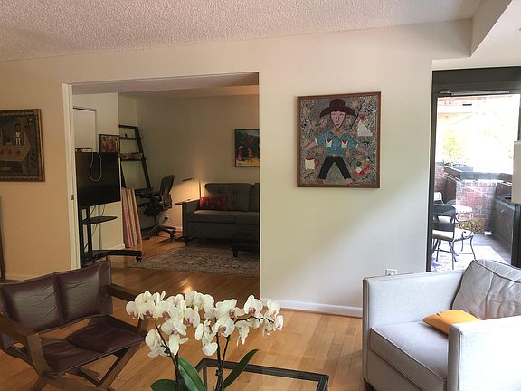 Furnished two-bedroom condo for rent in lively West End. If location is everything, this spacious unit wins hands down. The condo is on the second floor of The Gibson, across the street from the Ritz Carlton Residences and adjacent to the architecturally stunning WestLight building. Dozens of restaurants dot surrounding streets. The building is steps from the Foggy Bottom Metro stop and George Washington University, and barely a 10-minute walk to Georgetown, DuPont Circle, the World Bank, the State Department and the Kennedy Center for Performing Arts. Trader Joe s is two blocks away, and Whole Foods only a little further. Big windows give an airy, light feeling to the 1,028-square-foot unit. For most of the year, trees provide a wall of greenery to the living room, giving a respite from the city. Hardwood floors throughout. A spacious balcony provides for outdoor dining, lounging, Furniture within the unit is largely purchased from Crate and Barrel. Pocket doors in the first bedroom can be thrown open to the living room to provide a large entertaining area, The bedroom contains a desk wall unit and a pullout sofa bed. It also has two closets. The large master bedroom and guest bedroom both have sliding glass doors out to the balcony. The master has an en suite bathroom with a tub and large vanity. It has a walk-in closet and a second closet. The modern kitchen includes GE appliances, white subway backsplash tiles, a dishwasher and a microwave. Washer/dryer unit is in the kitchen. The unit also includes a 50-inch high-definition Vizio flat-screen TV. The unit includes an underground parking space. Owners provide high speed internet service. Tenant pays only electricity and cable TV. Lease is for one year, with the possibility to renew for longer. Rent is $4,150 monthly. No smoking. No pets, per condo association rules. The unit is available June 1 but could be negotiated for earlier if desired. Owner pays internet, all utilities except electricity and cable TV.