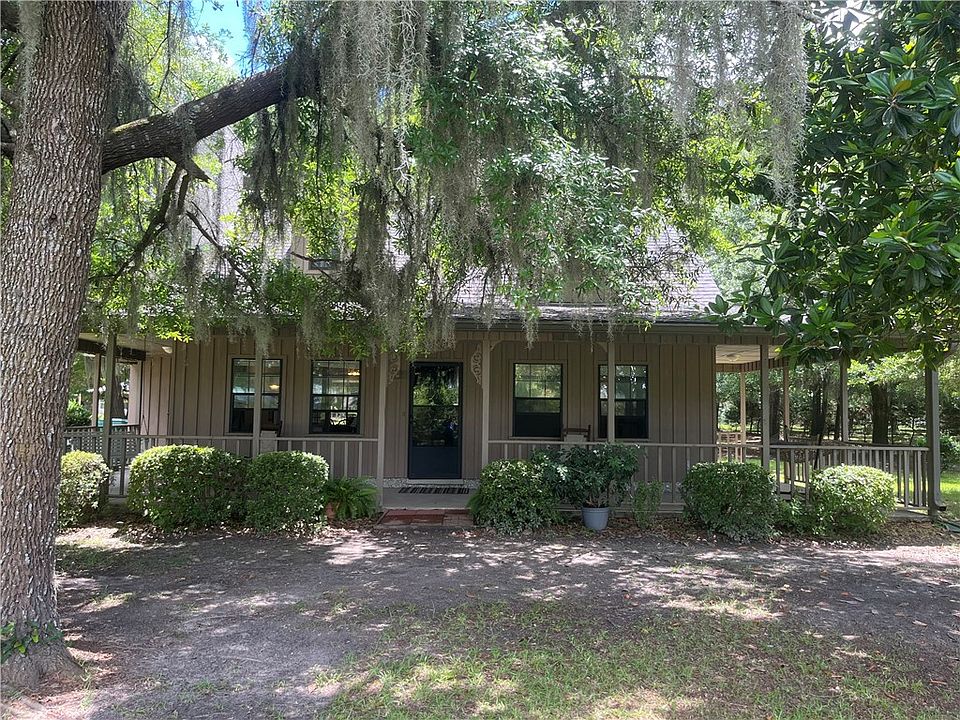 A serene setting in this well-maintained home with wood siding and updated features. The porch wraps around the house for a cool outside experience under the many trees on this 1.3-acre property. The finished sq ft. is 1386. It is the essence of peace and quiet in this neighborhood. It is close to Piggly Wiggly grocery store and restaurants nearby. The owners added a screened in sun porch to overlook the yard from the inside. There are 3 bedrooms and 2.5 baths. The primary bedroom and bath with walk-in closet is downstairs and two other bedrooms are upstairs with a main bathroom to share. The living room has a woodburning fireplace and built-in cabinets for storage. There is good storage in this house with walk-in flooring upstairs and storage under the stairwell. All appliances will remain with the house including the washer and dryer. Furniture is negotiable.