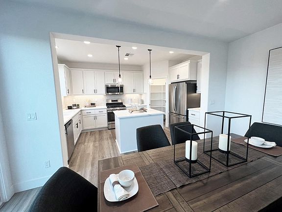 Mesmerize yourself in one of our brand-new floorplans at Santana Ranch! Homebuyers will be greeted with a covered porch that leads into our open great room and kitchen. The generous counter space in the kitchen is perfect for prepping and serving large family meals. The kitchen features granite slab or quartz countertops, luxury vinyl plank flooring- throughout first floor, and white shaker style cabinets. The naturally lit staircase guides you upstairs to our spacious primary suite featuring dual vanities, walk-in shower, and a large walk-in closet. The spacious 2-car garage comes textured and painted. Energy efficient features include drought tolerant landscaping, tankless water heater, and much more! Solar is available for lease or purchase, contact our sales team for more information. Photos shown are model home, visit the sales office for more information and to tour this stunning home!