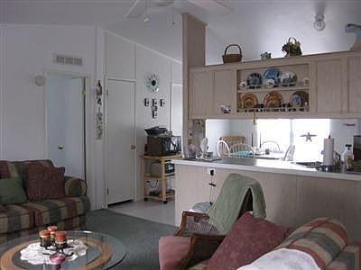 This charming home is spotless inside and out.The interior is newly painted and bright and airy. The no maintenance deck invites you to relax and enjoy. Lovely trees surround the private deck area. Extras are heat taped pipes, seamless gutters, drip system, security screen on front door, water saving toilet, ceiling fans and large tuff shed. Come take a look at this beauty.