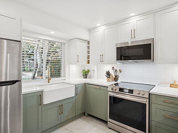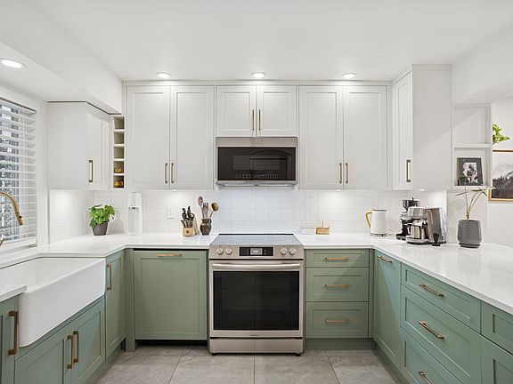 Heated floorsGold hardwareQuartz countersTile backsplashCozy wood burning fireplaceFresh paintPot lights