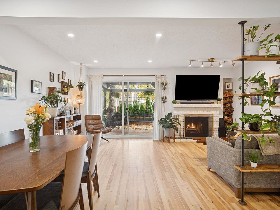 This is Eagle Ridge at its best—fully renovated, redesigned, and move-in ready. This 3-bed+den, 2-lvl TH features a standout 2-tone kitchen w/ heated floors, sage green + white shaker cabs, gold hardware, quartz counters, tile backsplash + S/S appls. Beautiful refinished solid birch HW floors, cozy wood burning fireplace, fresh paint, pot lights, updated doors/baseboards + sleek entry tile. New vinyl slider opens to a priv fenced patio ideal for kids, pets + entertaining. Up offers 3 beds, open den + spa-style bath w/ dbl-sink vanity, new tile + modern fixtures. Priv covered carport at your door; proactive complex w/ updated windows + roof. Short walking distance to Newport Village, Suter Brook, Coq Centre, parks, schools, daycares, hospital + SkyTrain. Book your showing today.