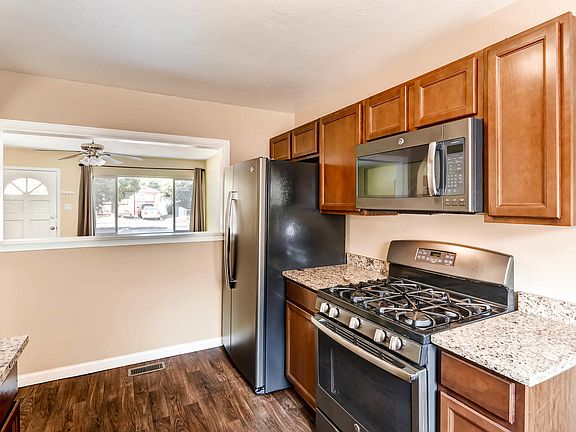 Spacious and open floor plan! This unique home boasts a lot of space with a large living room, added bedroom with extra space and dining area. Wood flooring in the living room and vinyl in the dining room and kitchen. Three bedrooms and an additional non-conforming room that can be used for storage or a recreation room. Covered patio space in back yard perfect for outdoor entertaining. Oversized custom built 2 car garage with storage. This property has been well maintained and very clean. This gem would be great with a few updates. Located within driving distance to the new Stanley marketplace & business district, Northfield shopping district, Stapleton community and Fitzsimmons medical campus. This property can be sold as part of a three property portfolio. Additional properties in portfolio are MLS# 9576641 & MLS# 7927905. All offers will be reviewed by 5:00pm on Monday, May 11, 2015.