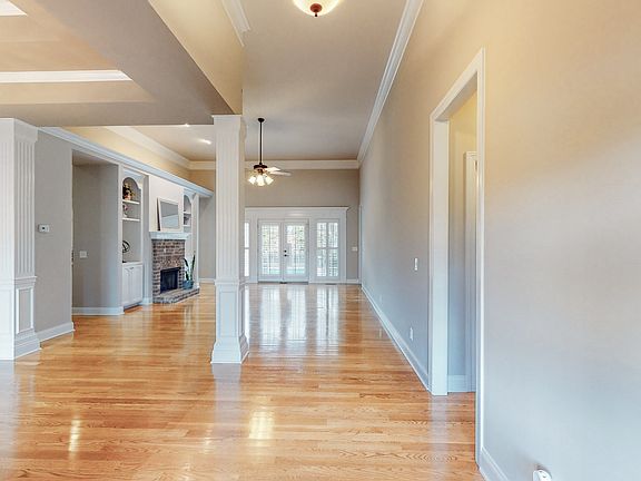 Stunning custom built Ranch in Farmington Subdivision! This beautiful spacious home sits on .89 ac and loaded with features you'll appreciate. Cathedral ceilings, open kitchen, double oven, crown molding, trey ceilings in dining room and primary bedroom, gas fireplace, hardwood floors, built in shelves, plantation shutters through out, finished bonus room with full bath, all bedrooms offer full bath. Massive laundry that can be a multi-purpose room.You'll love the backyard with beautiful mature trees that backs up to pasture!! Large cover patio with wood fireplace looks over the saltwater pool with wrought iron fence and hot tub. Storage shed for all your gardening needs. Let's not forget the rocking chair front porch! Storm shelter in 2 car garage.