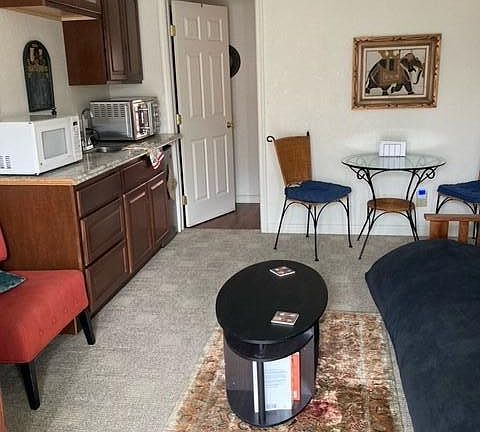 This private in law unit has a kitchenette, almost a full kitchen, including a large toaster oven, microwave, sink, half fridge, single burner, dishes and utensils. The bathroom has been recently renovated in the past year, the small bedroom has a back door to a small patio. The living room area separate back porch and separate entrance. Safe digital lock, security camera, motion light. I'm looking for a tenant with excellent credit. It's very close to my house since it's a former garage long and narrow approximately 400 ft. Utilities are included. It has Wi-Fi and the tenant may use the Wi-Fi, however, The Wi-Fi will not be in the contract in case something happens and it goes out. Absolutely no pets. No smoking. The unit is close to the house I live in. It has a charming back small patio which is strictly for the in law tenant's use. One year lease only and must have excellent credit/background. Furnishings, and utilities Included: PG&E, water, trash are included and so are most furnishings. The wireless wifi is available to use but not part of the lease. No smoking on the property of any substance. No pets. There is plenty of street parking. The tenant must have excellent credit and references from current landlords and job. The occupant of this unit is in close proximity to the house along with included utilities, so the pricing is for only one tenant for this in law unit. If you are interested will you email and include a photo id of your driver's license to confirm you are the person viewing the unit with the person filling out the application and possible lease and please use your personal email so you may receive an invitation to view the unit and later to apply. If your application is accepted, additional verification and references are part of the process so be prepared to provide additional validation prior to drafting a lease agreement. Once your application is accepted and confirmed, the unit may be an excellent home for you. The one bedroom in law unit is like a little home, very comfortable, clean and great location in the downtown area.