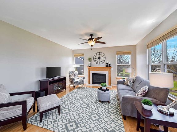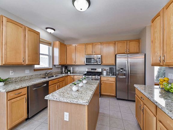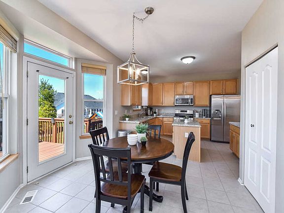 Welcome to this extraordinary home featuring 9' ceilings, a finished walk-out basement with half bath, and a first-floor den that could be a bedroom if needed. Expansive kitchen with granite counters, stainless steel appliances, island, and abundant cabinetry. Eating area with bay window offering access to your deck. Light-filled family room with fireplace. Living room with vaulted ceiling and palladium window. Dining room with updated light fixture. Cathedral ceiling in your master bedroom with a palladium window and walk-in closet. Luxurious master bath with double sink and separate tub and shower. Additional bedrooms and hall bath with double sinks and linen closet completes your second level. Finished walk-out basement boasts a second family room a bonus space, abundant storage, and a half bath. Step out to your brick-paver patio from your basement to enjoy all this backyard has to offer. Three car garage. Don't let this exceptional home with a charming front porch pass you by.