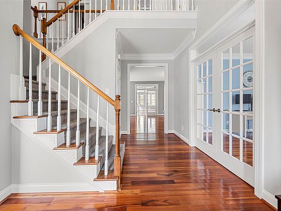 Beautiful home on over half an acre with private, fenced backyard. Wooded and creek behind house. Bright, large sunsroom off back of the house and Trex deck for low maintenance, lavish landscaping. Spacious kitchen with breakfast area and desk. Granite countertops, kitchen cabinets refinished in 2022. Great room open to kitchen. Roof replaced in 2011, hardwood floors upgraded on main floor. Master bath remodel 2017- free standing tub, frameless glass shower, double vanities with makeup vanity. Upstairs bath included new vanity, bathtub and shower.