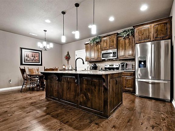 Many upgrades added after closing. See attached amenity sheet. This 3 bed, 2 bath home features a large living room that opens to the eat-in-kitchen and dining area. Gas log fireplace in the living room! Large master suite with trey ceiling, bath with extra storage, double vanity, private toilet room, and huge master closet that connects to the laundry room! Stainless steel appliances, granite counters, custom cabinets! Enjoy evenings on the over-sized covered back patio! Great home for any family!