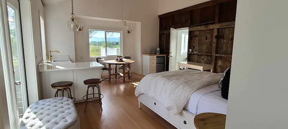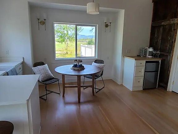 Take it easy at this unique and tranquil getaway full of 150 years of history. Walk the 140-acre grounds under the backdrop of Grizzly Peak and Mt Ashland. Explore the pond and creeks throughout the property and enjoy the scenery and wildlife all while being 5min to the hub and culture of downtown Ashland, Oregon. This completely remodeled, historic 1860's original pioneer home, is spacious and light filled. It is the perfect ranch house for relaxing and being able to enjoy Ashland amenities. This spacious, light-filled studio apartment was once an 1860 pioneer house with post and beam dowels and plank walls. Now, fully remodeled, with modern farm finishes and one preserved historic wall still showing, this property is a perfect blend of cute and charming coupled with modern comforts. This is a one-of-a-kind experience you will not find anywhere else. The one-bedroom studio apartment comes with stunning historic replica brass fixtures, a new luxurious queen bed, a high ceiling, expansive views and an optional bed/sleeping loft for more floor space if desired. Kitchenette includes a coffee bar, two burner counter top stove, blender, toaster, and mid sized refrigerator. Please be mindful, this is a working ranch during the week day work hours with grounds keepers, workers, farm equipment and projects being conducted at various locations on the ranch. Fallow Deer and Bison are expected in the coming 12-24 months *There is shared mudroom with dual locked access containing the washer and dryer. This is the only shared space with the main home. While connected with two independently locked access points, there are no shared walls with the main house where the owner lives. Enjoy the ranch lifestyle in modern comfort while only a short 5 min drive or bike ride to the heart of Ashland's fine dining, shops, plays & parks. The property comes fully furnished (can be rented without furniture as well) Ranch Policies: 1. No smoking of any kind anywhere on the premise or property, including marijuana. 2. No Pets due to farm animals and liability. 3. For safety, no entrance into the barn 4. Utilities are $250 per month and include: Trash, Water/*Septic, Electricity, Gas, Internet, taxes, ground maintenance, mowing, irrigation (*In the event of damage from trash, wet wipes or other items not intended for septic systems will be billed to the tenant.) 5. Tenant is required to maintain renters insurance (we can assist if necessary).
