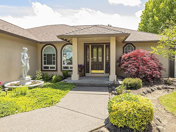 This home is an exceptional find! From the moment you arrive to this custom built home you'll find quality finishes and pride of ownership throughout! Recently updated with a New roof, Exterior paint & HVAC system. Single-story w/a split floor plan offers a Gourmet kitchen with stunning granite counters, ample cabinets, island with a WOLF induction stove, wall oven and a farmhouse sink overlooking the backyard. Living room features a gas fireplace, vaulted ceilings and loads of windows for a ton of natural light! Separate but open, dining area and an addt'l living space off the kitchen. Primary suite includes access outside, jetted tub, separate shower w/dual heads and a walk-in closet! Both bathrooms have self-cleaning toilets and water glow LED faucet light temperature sensors. Situated on a .35-acre lot that backs a year around creek allows for additional privacy. Park-like backyard w/gazebo. Nice dog run on the side of the house. RV parking+a detached 45x15 RV barn w/full hook-ups