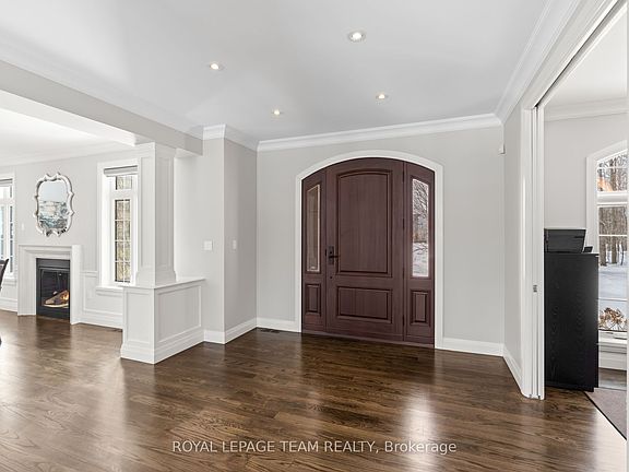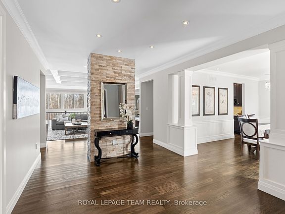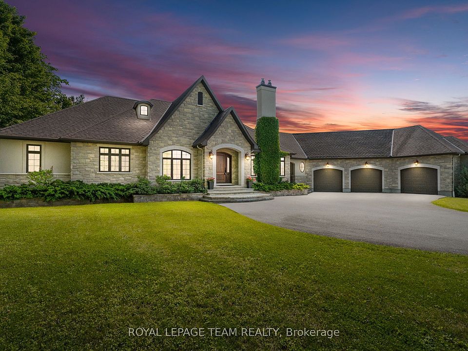 Set on approximately 1.6 acres in the Rideau Forest community of Manotick, this exquisite bungalow offers an exceptional blend of style and sophistication. From the moment you step inside, elegance is evident in every detail. Thoughtfully designed architectural elements include coffered ceilings, detailed mouldings, site finished hardwood flooring, stone accents, and fireplaces, all complemented by a timeless neutral décor. Expansive windows frame the surroundings, filling the spaces with natural light. The generous floor plan features four bedrooms, five bathrooms, and a dedicated home office with custom built-ins overlooking the front streetscape. The award-winning NKBA kitchen is a statement of craftsmanship, with extensive cabinetry, custom millwork and a Butlers pantry. Three main-level bedrooms provide private retreats, including the primary bedroom with a luxurious ensuite and a walk-in closet. The secondary bedrooms each have walk-in closets and individual sink areas, while sharing a Jack-and-Jill bathroom. The lower level mirrors the quality of the main level, with large windows, a spacious recreation room, a theatre room, a secondary bedroom, and a full bathroom. Outside, the backyard offers a picturesque retreat, set against a backdrop of mature trees. Thoughtfully designed with a blend of landscaping and hardscaping, it features a covered porch, a spacious patio, and raised armour stone accents. This magnificent property captures the essence of luxury living and offers a location that is only moments from boutique shops, restaurants, and cafés in the charming village of Manotick.