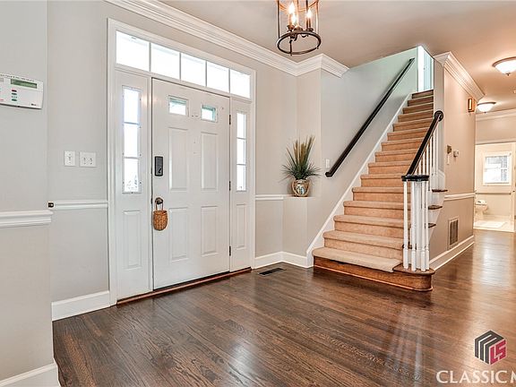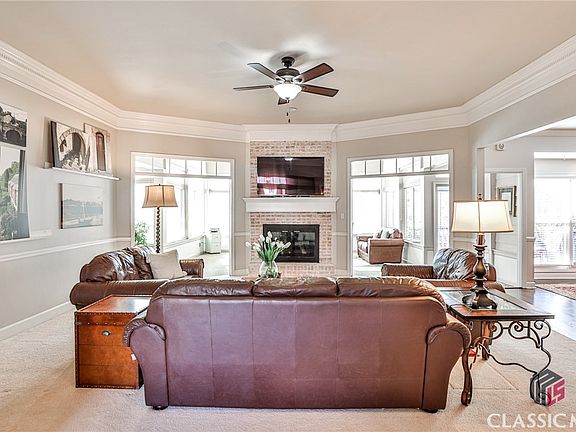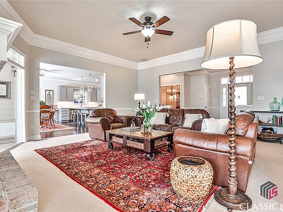 Just listed in Jennings Mill Country Club, Oconee County's premier golf course community. Located on a stunning homesite, this property overlooks the fairway of the 6th hole. The circular driveway makes for a beautiful entrance to this recently painted brick home. The main level features open living spaces, brick surround fireplace with gas logs, additional living room with large windows on three sides that have beautiful golf course views! The kitchen was recently updated with painted cabinets, marble counter tops, double ovens and gas cooktop. The oversized 3 car garage has additional space for storage and an extra fridge. There are 3 bedrooms on the main level, including the primary suite with walk-in closet, double vanity and separate sub and shower. Upstairs there are 2 bedrooms and 1 full bathroom. 30 year architectural roof is less than 2 years old! Membership to the country club is optional, and includes 18 holes of golf, driving range, an impressive tennis program, pickleball, clubhouse, restaurant, playground and pool. Zoned for the award winning North Oconee schools and convenient to Athens, UGA, dining, grocery and major access roads.