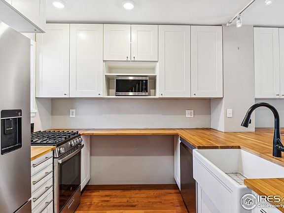 Gorgeous remodeled townhouse is practically turnkey ready for you or perfect for an investment having been previously rented for $2,000+/m0nth. Owners meticulously updated for themselves. IKEA kitchen is the heart and soul of the home with ample storage, cabinets, upgraded appliances and plenty of countertop space. Fisher and Paykel refrigerator offers tremendous storage space. Gas range cooktop! Extra cabinets open under the overhanging eat-in bar countertop. Newer roof just installed. Additional cabinets and display area added into dining space. Farmhouse ceramic sink offers plenty of capacity for food prep and dishes. Stainless steel dishwasher with aluminum tub. Step outside to private patio for al fresco dining. Real hardwood steps ascend to second level. Stunning remodel continues upstairs with gorgeous low maintenance laminate flooring and complete bathroom remodel. Several recessed niche storage shelves in shower and bathroom. Custom hooks. Owners added a multi-purpose laundry sink in W/D area. Loads of storage. Second bedroom has attic access and the hall closet on the main floor has a panel that opens to mega crawl space storage and furnace. Ceiling fans and central air conditioning. Built-in can lighting really accentuates living space. Bit of green right outside your front door. Bonus - community has individual trash cans, part of HOA. There is a community swimming pool. Walk to school (especially Angevine Middle School). Close to shopping and dining. One designated parking space; HOA just replaced the roof. Excellent access to trails, walk all the way to Lafayette's Wanaka Lake! Real hardwood floors on main level.