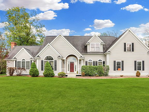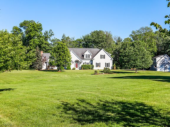 This magnificent builders home is truly one of a kind with attached 3 car garage and detached garage! Attention to every detail as you walk around this expansive Cape. Great entertainers layout with spacious granite kitchen leads to a huge 24 x 20 family room with fireplace, hardwood floors and cathedral ceilings. Formal living room and dining room. Beautiful front foyer with turning staircase to the second level which offers massive 24 x 20 master bedroom with lighted trey ceilings with a huge master bath with jacuzzi and tiled shower. 2nd floor also offers 3 additional bedrooms, bath and separate laundry room. Almost an entire finished basement with sep zone heat. The yard is second to none with expansive landscaping and the setting is unbelievable with apple orchard to the right as you drive up. Separate detached 2 story 30 x 44 garage that will fit all the toys! You will not be disappointed!