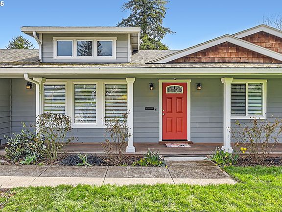 Surprisingly thoughtful turnkey remodel on a cool corner lot in a quiet NE Portland location where you can walk to the park and shopping, blocks from Glendoveer Golf with fitness path and brewpub. Designed to be a forever home, features include vaulted ceilings, lots of skylights and windows for lovely lighted living. Luxurious large primary suite includes walk-in closet, jetted tub, large shower, quartz vanity & tile floor. Spacious great room plan has to be seen to appreciate all details. You’ll love the upgrades throughout the kitchen including quartz counters & eating bar, lots of storage, stainless steel appliances & skylights. Accents throughout include Zebra blinds for light or privacy. 2nd bedroom has built-in Murphy bed! Wait until you see the garage with epoxy floors and finished to be an office with ceiling fan, very cool space. Spring brings a plethora of planted roses in front and a large covered patio in back along with she-shed studio. RV parking and plenty of driveway parking, dog run. Extra bonus room in back plumbed for utilities for hobby shop. Even a very handy outdoor hot water spigot for filling tubs or cleaning. Also, on demand hot water. Hot tub and Arlo cameras are excluded from sale. [Home Energy Score = 6. HES Report at https://rpt.greenbuildingregistry.com/hes/OR10061100]