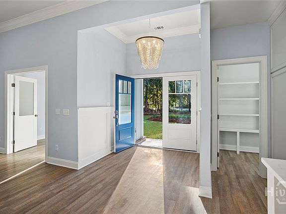 New construction in Belvedere Island Plantation located in the coastal area of Townsend, Ga! Situated on 0.55 acres, this 2187 sq ft split floor plan cottage style home features 3 bedrooms, 2.5 baths plus office. So many upgrades in this home, including all wood cabinetry, quartz countertops, stainless steel appliances with separate cooktop and wall oven, and luxury vinyl plank flooring. Just off the kitchen is a walk-in pantry and separate laundry room. Primary bedroom offers cathedral ceiling with shiplap accents. Primary bathroom features large walk-in tile shower and closet with all wood built-ins. Foam insulation in attic provides energy efficiency. Exterior features include cement board siding, brick skirting, and landscaped yard complete with sod and irrigation system. BIP amenities offer a clubhouse, swimming pool, tennis courts, dock with boat hoist, boat landing, nature trails, and horse stables Builder offers $5,000.00 toward closing costs. Listing agent is spouse of seller.