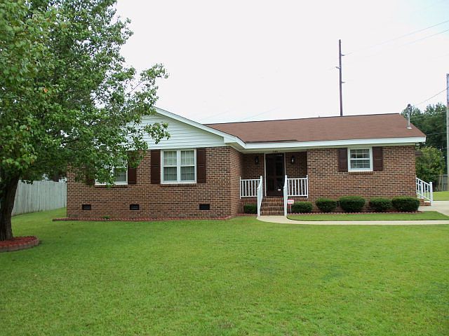 Nice home new hardwood floors in living room and hall, new carpet in bedrooms beautiful fireplace with gas logs,large living room, eat in kitchen with large dining room and breakfast bar, huge back deck huge yard. Covered Side porch