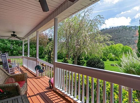 This home really has it all! Gorgeous updating, serene setting with mountain views, open floor plan with cathedral ceiling and skylights, and three bedrooms on the main level--one in the visitor's suite, with a huge walk-in shower, sitting room, and separate entrance and HVAC (perfect for Airbnb). Plus, an over-sized garage and finished room above, with a spectacular view from a large round picture window. Only 23 minutes from downtown Asheville, you'll still enjoy nature from two decks or the covered front porch. Cozy up to a wood fire in the living room, or at the outdoor stone fire pit in the professionally landscaped, partially fenced yard with fruit-bearing trees. Come see all this, and more, for yourself! You won't want to leave!