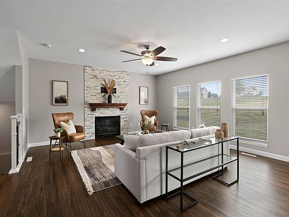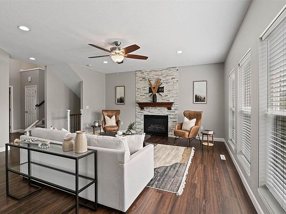 Beautiful 5 Bedroom, 3.5 bath home situated on an acre property! The grand front porch leads you into this 2 story foyer home. Open kitchen with quartz tops, large island, corner pantry, abundant cabinetry & all appliances staying. The main level is inviting with a stone fireplace in the grand living room, large windows, white trim & tall ceilings. Convenient office/formal dining area. Upstairs you will find 4 bedrooms a laundry room & 2 bathrooms. Large primary bedroom with primary bath featuring tiled shower, soaking tub, double vanity and large walk-in closet with built bin shelving. The oversized three car garage opens to the mudroom drop zone. Back custom patio gives a beautiful view of neighborhood and large backyard space. Lower level features a large family room, wet bar, walkout to 5th bedroom and full bath. There is so much to love about this home!
