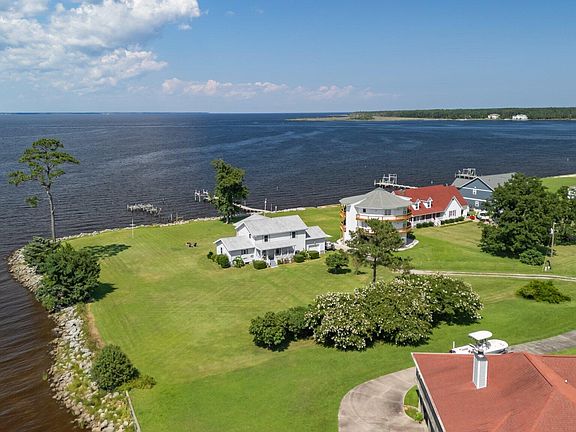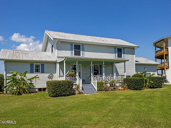 Discover the unmatched beauty of this stunning Neuse River property, where breathtaking views and direct access to the Intracoastal Waterway and Pamlico Sound create an idyllic retreat. Originally a 1925 barn, this quintessential farmhouse was transformed into a charming waterfront home, blending rustic charm with modern comfort; featuring original exposed beams in the living room that flows effortlessly into the kitchen and dining areas. The home boasts expansive covered porches in both the front and back, with the back porch screened-in and equipped with ceiling fans for year-round enjoyment. The first-floor master suite opens to the backyard with its own private deck—perfect for enjoying the serene river views. Beautiful, reclaimed pine hardwood flooring from a neighboring barn graces the second-floor landing, which leads to a covered porch with 180-degree views of the Neuse River—ideal for morning coffee or evening relaxation. Two more bedrooms on the second floor share a full bath, making it perfect for family or guests. The home has been meticulously updated including new windows, exterior doors, roofing, flooring, a Trane HVAC system for the second floor, and newly rebuilt upper & lower back porches. Enjoy modern conveniences such as Starlink internet, a weather station with dual monitors, and a SimpliSafe security system. While the existing dock is in disrepair, it presents an exciting opportunity for customization, providing direct access to the water for boating and other activities. This property offers a rare combination of natural beauty, historic charm, and modern updates, making it a perfect sanctuary for those seeking a peaceful waterfront lifestyle. It's a slice of heaven waiting for the right family to create lasting memories. Don't miss your chance to own this waterfront gem—Contact us to experience this extraordinary property in person.