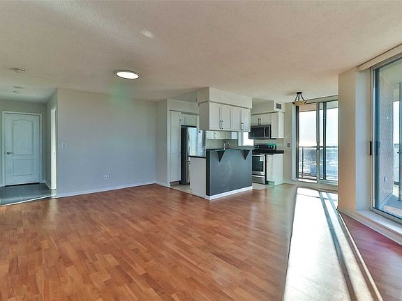Spacious. Sun Drenched 2 Bedroom, 2 Bathroom, 2 Parking 1085Sqft Suite In Fantastic Village Terraces. Two Walkouts To Wrap Around Balcony...Views Of Downtown Mississauga, To Downtown Toronto, And Of Course - The Lake! Gas Bbq Hook Up On Balcony! Enjoy Open Concept Living W/Amazing Views In This Highly Desired & Rare Rental. Laminate Floors Throughout Master Bedroom With Two Large Closets And Juliette Balcony With Shutters. Ample Storage Everywhere (With Closet Organizers). Quiet Area With Parks, Schools, & Shopping Close By. Freshly Painted.