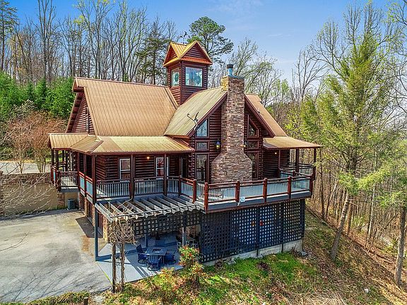 The Vieux is an eclectic cabin featuring old style New Orleans wrought iron, cathedral ceilings and unobstructed, breathtaking views of Mt. Leconte and other mountains. Although the pictures speak for themselves, The Vieux also has a woodburning fireplace with a floor to ceiling rock wall, various oversized windows to show the beautiful views surrounding the cabin, a large brand new hot tub, walk around balcony, and a full cabin water system supplying purified water. The 6 bedrooms and 5 bathrooms are perfect for 20 guests, but there's space for more beds/sofa beds to host more than that. The oversized recreation room has a pool table, foosball, shuffleboard, arcade game and more, while the rest of the cabin has an arcade room, another shuffleboard table and more. This cabin is also a destination Wedding Venue in itself for weddings on the wrap around balcony or in the back yard. The receptions are held in the dining room or in the back yard with the carport serving as a dance floor. The parking is plentiful which makes this property perfect in so many ways. The front yard of the cabin has gorgeous trees that change colors in the fall and the yard can easily be flattened or terraced to provide more space for outdoor games or even a putt-putt golf to be put in. The new well was put in in June 2021, new windows will be installed in the Cupola in a few weeks by a licensed contractor, new lampposts are being installed the entire length of the driveway, an oversized shed is on the property for housing lawn equipment, wedding decorations/tables/chairs/etc. and more. The butler's pantry in the main kitchen has a 2nd refrigerator and downstairs is a 2nd kitchen with stove and microwave. The oversized dining room seats more than 30 guests. Adjacent to this property is a Wedding Venue with a gazebo and small outside chapel that can be used by guests of The Vieux if desired and 7 other cabins that can house more guests should The Vieux need it for a wedding, large family reunion, etc. The current owners of the cabin are willing to take on the maintenance and management of The Vieux at an affordable cost and continue to keep it listed on The Knot & The Wedding Wire as well as their own personal website. 2022 rent roll was $113,233 while 2023 is currently at $173,002 including current bookings through the end of the year. 2024 already has $76,855 in rent on the books with the potential to reach over $250,000 for the year. Current owners started from scratch with this cabin in December 2021 as an overnight rental.