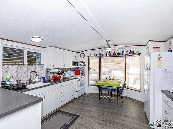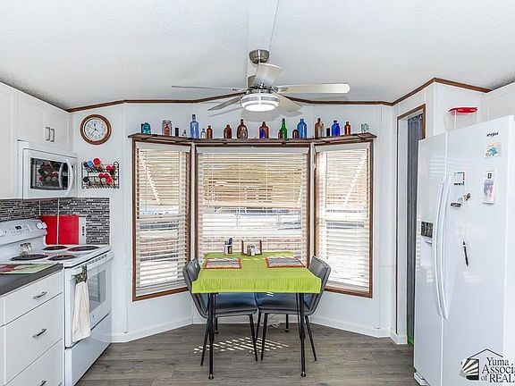 Well updated two bedroom one bathroom in desirable magnolia village. New plank flooring and base boards in kitchen and living area. Open floor plan with updated cabinets and counters in kitchen with newer appliances. Home has a large arizona room that is screened and perfect for enjoying Yuma winters. central A/C with two new mini splits in living area and one in primary room. Full bathroom with new vanity. back yard has new wood fence for privacy and a storage shed. Home comes furnished! Clubhouse with pool and many year round activities with low yearly HOA fees. All on septic with low HOA fees. Come see today!