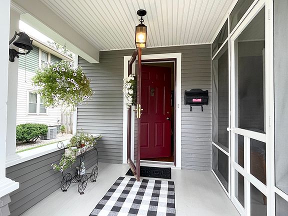 Circa 1925, this quintessential American Foursquare offers the character of old with modern day conveniences. Most renovations occurred in 2017. The screened in front porch welcomes you to this 4 bedroom home which includes a family room with a gorgeous wood ceiling. For you to enjoy the early morning sun, there is the 2nd screened in room off the family room allowing a place to view the 2 tiered deck, the well maintained landscaping and the side & back yards. The home includes gorgeous finished hardwood flooring throughout the entire home. (No carpeting.) The 1st floor has all drywall. The kitchen was remodeled in 2017 with quality hardwood cabinets, under cabinet lighting, solid surface counters and an ideal pass through to the family room. Huge family room has a beamed ceiling and fireplace. The back staircase leads to the very spacious master bedroom & bath with imported tile and medicine cabinet with hidden storage! Other updates include: 2020 roof replaced with all new sheathing and shingles on home roof and garage, new gutters on garage, and entire home has new gutter guards. The home and garage was painted in 2020; 2018 new electric 100 amp service. Main bath remodeled in 2017; water heater 2016. Surely you will enjoy the location of this home just one block from the Kankakee River and Cobb Park with tennis courts, and trail. The home has been loved by the current owner and is so very clean. Call today for your private tour of this home known by its history as the Huckins House.