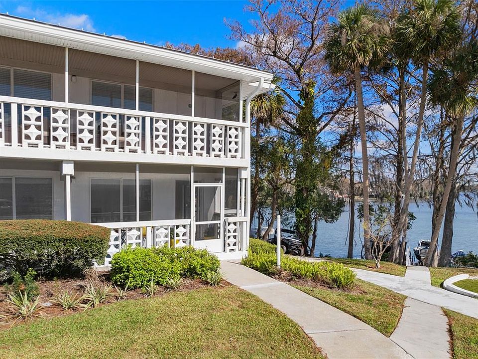 ENJOY LIVING THE LAKEFRONT LIFESTYLE! This incredibly unique & special property has not been available for over 30 years. One of only four larger deluxe end units in the entire complex, this first-floor renewed residence boasts 1246 SF, two bedroom & two updated full baths. Being the closest unit to the lake, it is only steps to Lake Maitland & the included spectacular ASSIGNED BOAT SLIP! The expansive & welcoming screened-in front porch is perfect for a morning cup of coffee or an evening glass of wine or entertaining guests with sensational views! The very open and spacious living area is freshly painted & delivering new luxury vinyl flooring. The large front windows bring in streams of light and the private balcony off the living space offers breath-taking views of the lake, towering gorgeous trees and wildlife birds. The Kitchen is ready for endless possibilities to expand and create your own modern masterpiece for culinary delights. The primary bedroom features double closets, new carpeting, new ceiling fan & a private balcony overlooking the lakefront with amazing views. The 2nd bedroom also has double closets, new carpeting, and new ceiling fan. Both baths have been refreshed with new vanities, new faucets, new lighting & new mirrors to compliment their mid-century style. Other notes: newly painted throughout interior, new blinds on all windows, brand new electrical panel & new modern light switches & receptacles throughout, 2017 HVAC. 2022 Metal roofs on buildings in community. Bonus: 2 assigned parking spaces. The wonderful amenities this community has to offer, include a beautiful pool overlooking LAKE MAITLAND, a clubhouse with a fully appointed kitchen, a large community dock, a putting green, shuffleboard courts, enclosed bicycle garage, storage units, and convenient laundry facilities. The community also has onsite management. Nestled in a thriving area, you can explore the local restaurants or shops with easy access to Whole Foods, Winter Park Village, Park Ave, Shopping, Enzian Theater, Lake Lily events, Fort Maitland Park and so much more. This one-of-a-kind home delivers so much, so please come take a look at this treasure today!